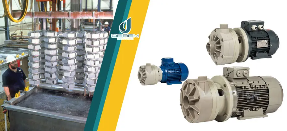 Химические насосы для электролиза должны быть устойчивыми к агрессивным средам, поэтому для них используют коррозионностойкие материалы, такие как полипропилен (PP) или поливинилиденфторид (PVDF). Чаще всего это центробежные насосы, часто с магнитной муфтой, что делает невозможным протекание электролита. Для перекачки химически агрессивных жидкостей, кислот, щелочей и солевых растворов, используемых в гальванических процессах, подходят насосы с магнитной муфтой или специальные пластиковые насосы, обладающие коррозионной стойкостью.